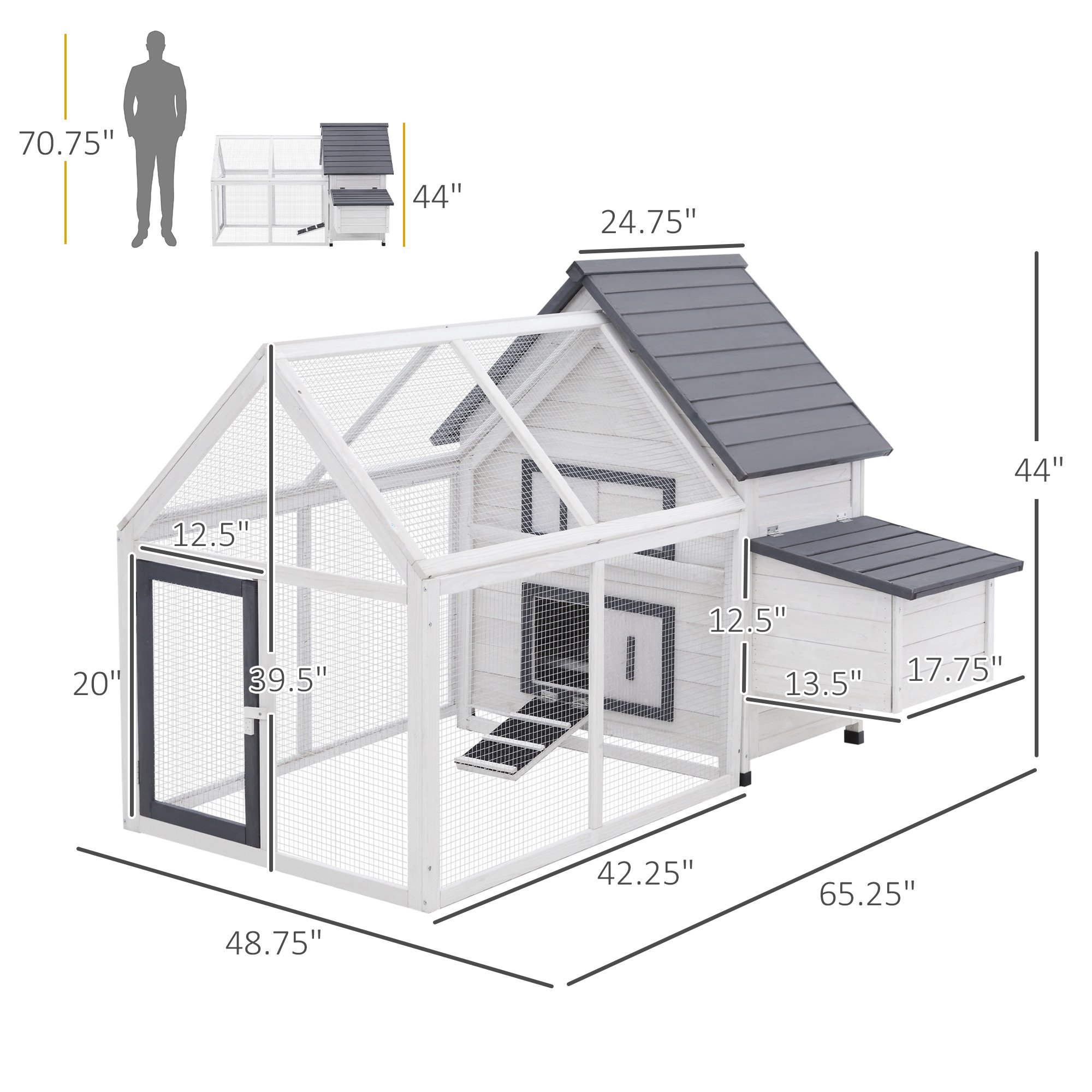 Open Space: 5.4' long and 4.1' wide, this chicken cage provides large open space for 1 chicken to have a roomy home. The detachable design allows the main house and run box to be used separately.