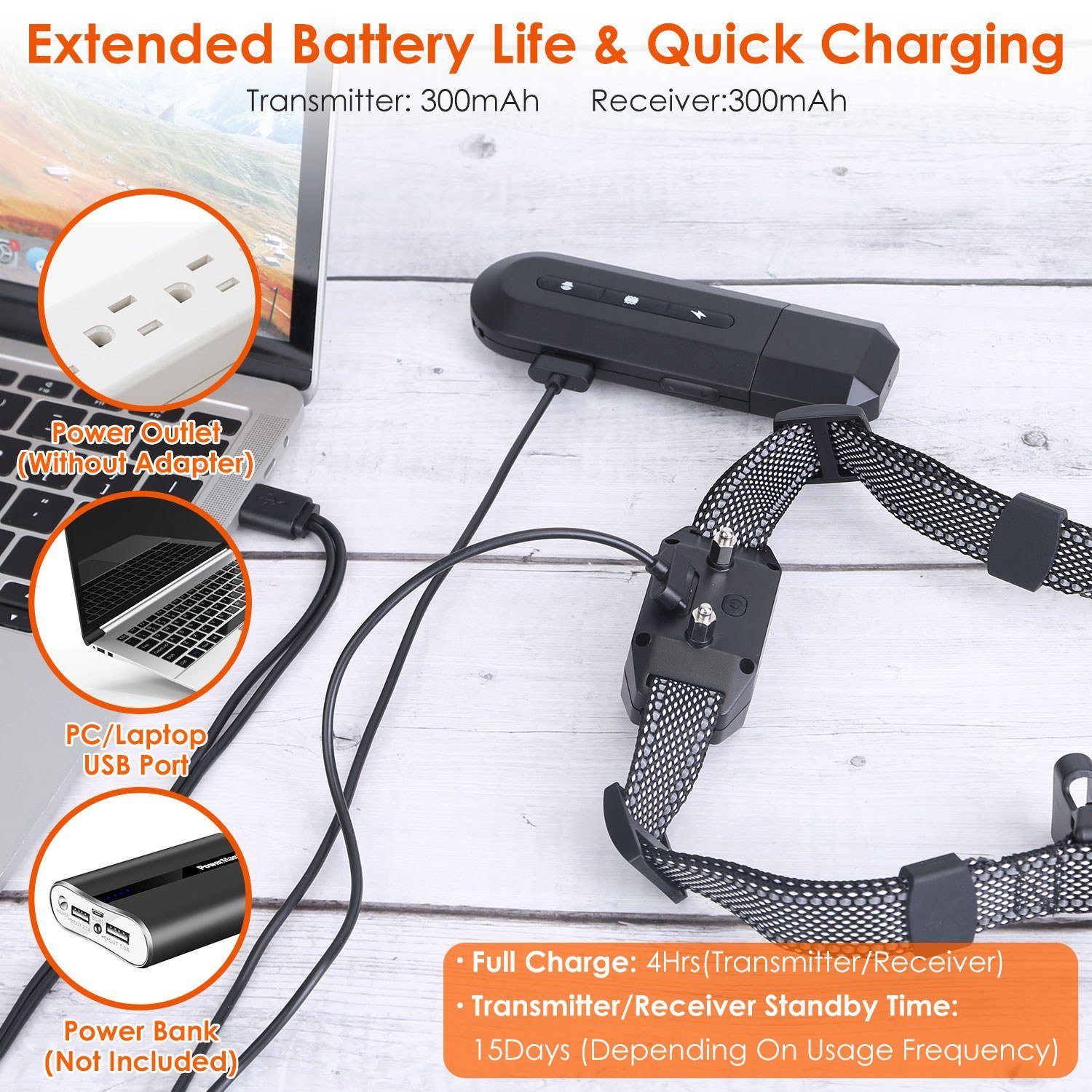 *Long Standby Time*: Adopt 300mAh rechargeable battery and convenient 2-in-1 charging cable, about 4 hours charging will render you 15 days long standby time for receiver and remote. Battery indicator and easy button operation offer great usage experience.