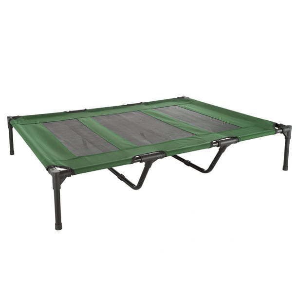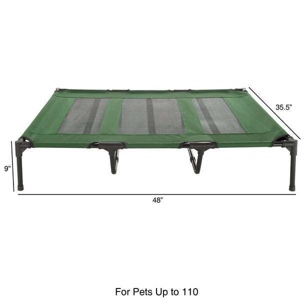 PRODUCT DETAILS - Materials: Mesh, Coated Steel, PVC Connectors, and Water-Resistant Canvas. Dimensions: (L) 48'x (W) 35.5' x (H) 9'. XL Dog Bed Carrying Case Included. For pets up to 110lbs. Color: Green.