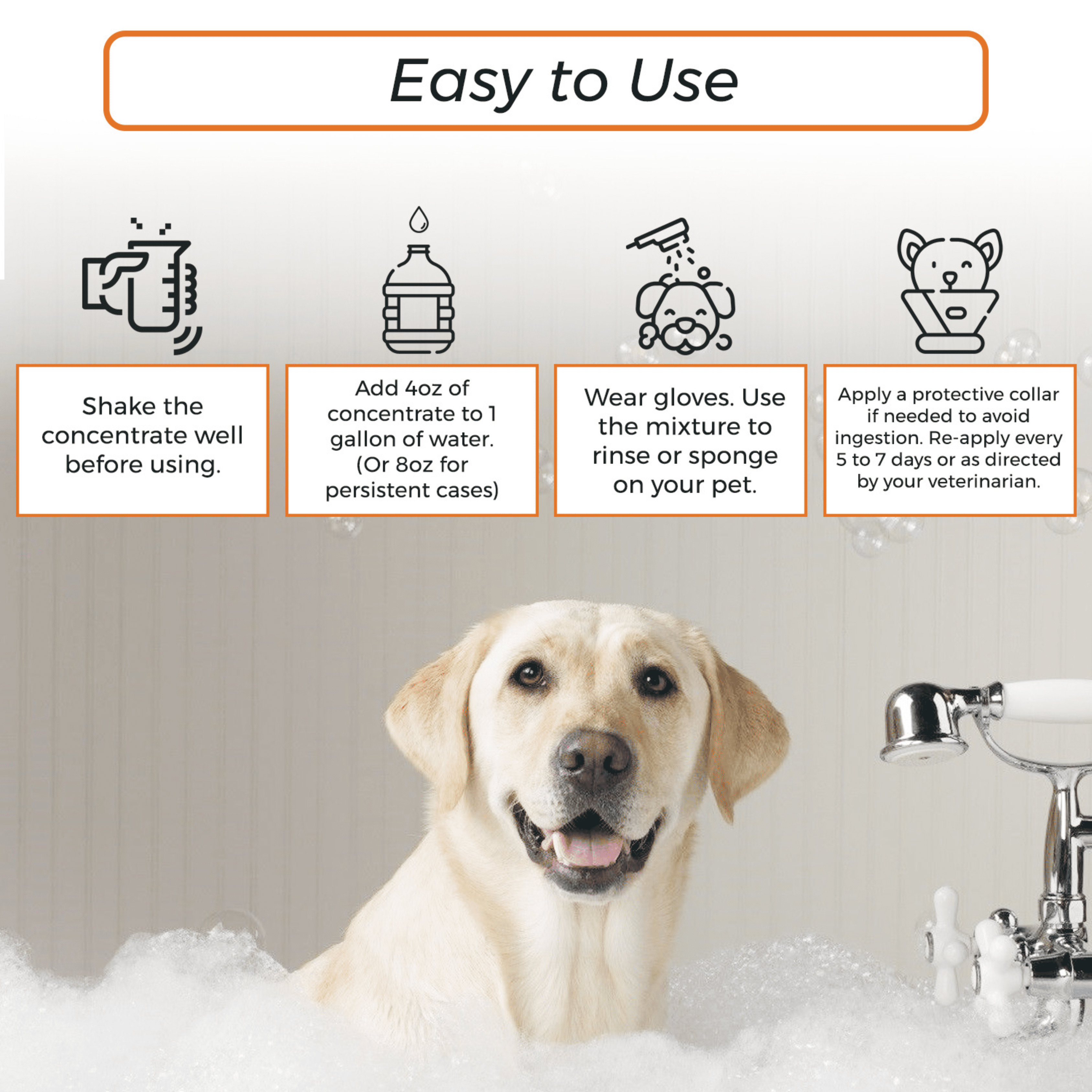 4.EASY TO USE - Dilute this flea dip in water, then use the mixture to rinse or sponge on your pet. You may also dip your pet in it. It may stain so make sure to wear rubber gloves.